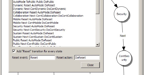 Stefan Duffner, the developer of Qfsm kindly added an export window with vvvv automata code. From now on you can easily design your very complex logical state machine with a graphical editor. The Automata code is even updated live, when editing the state machine: