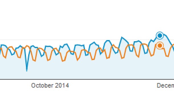 the spam-attack also destroyed the session-overview of the whole year. what you see below is starting from march 7th and compares 2013 (orange) and 2014 (blue).
